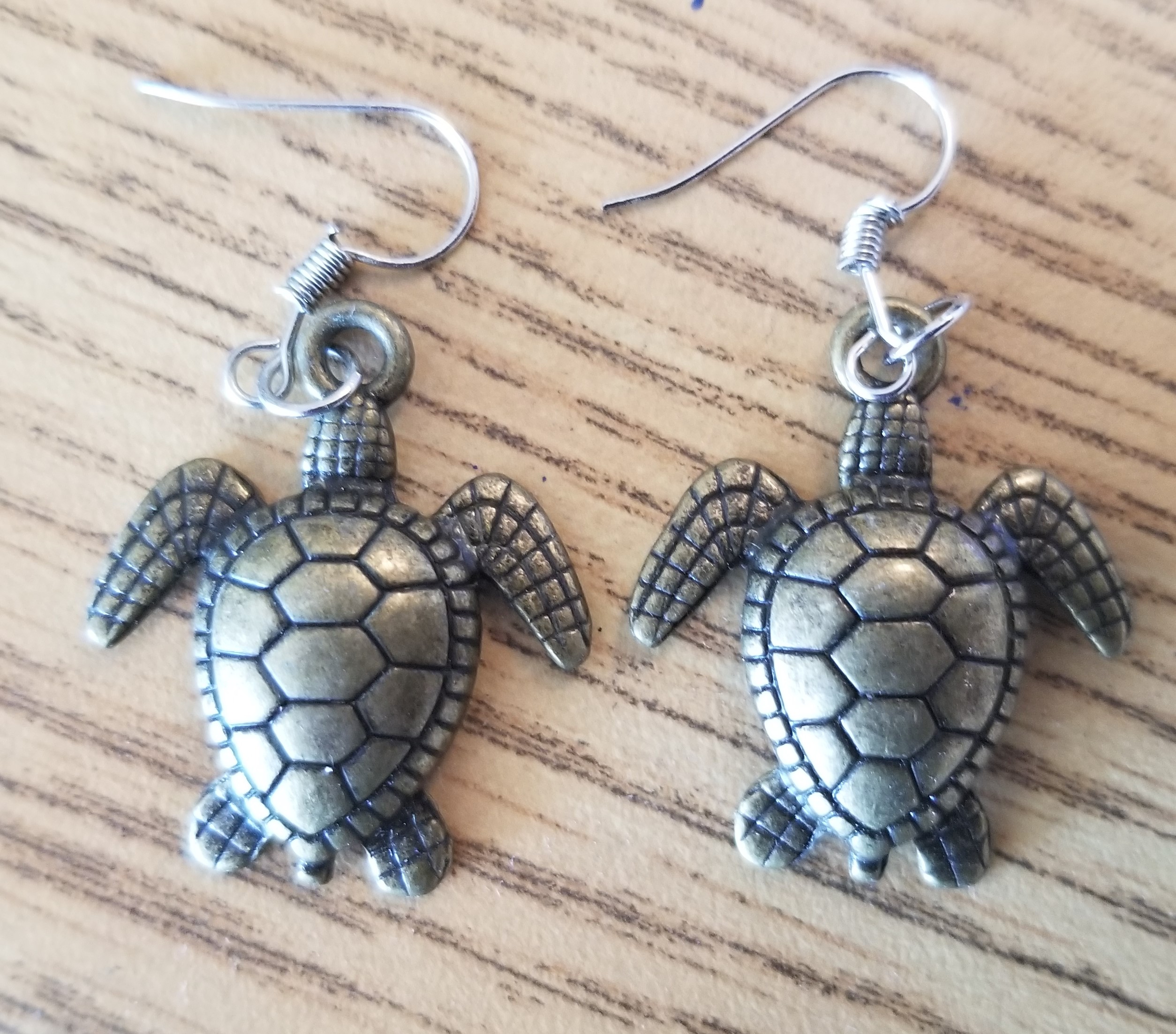 Bronze turtle earrings, handmade with beads from Michael's. Limited edition - between two to four sets available total.